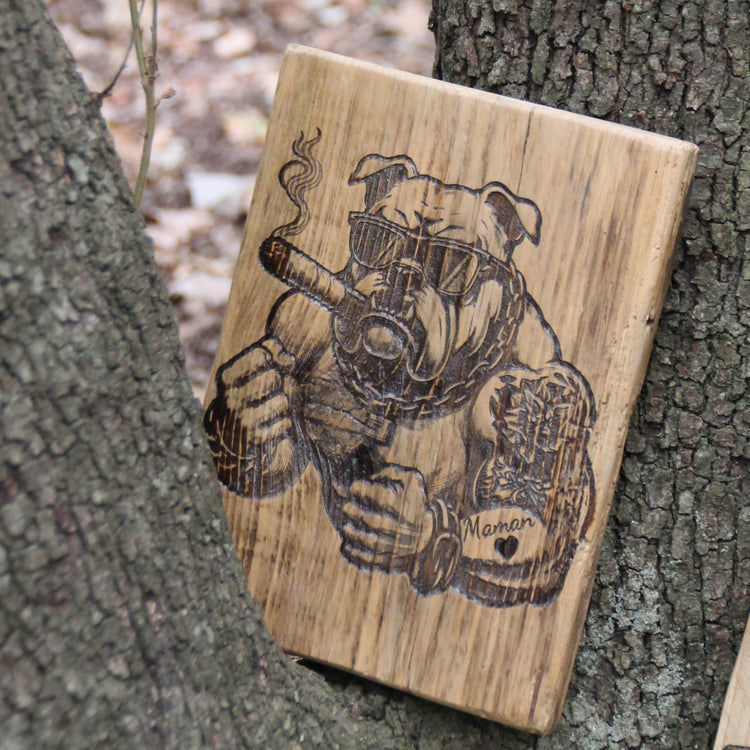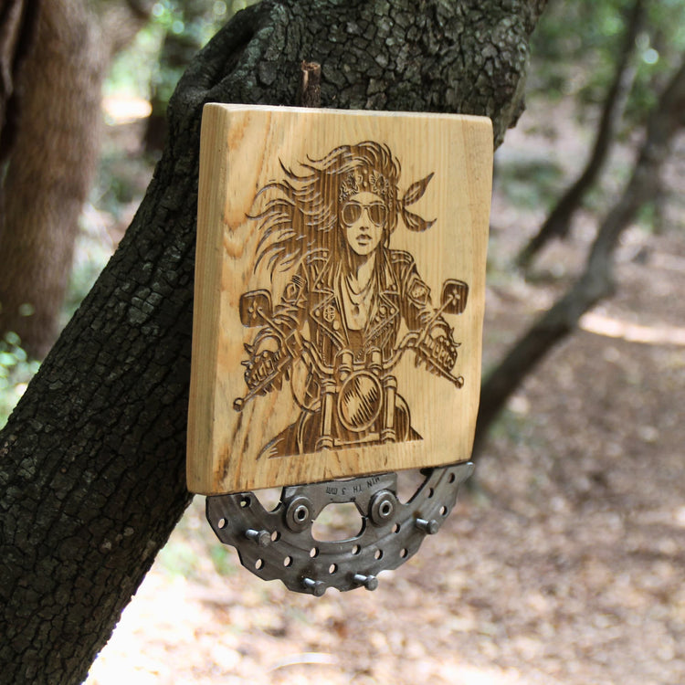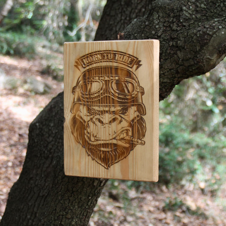 Un tableau en bois gravé, à l’ambiance garage ou esprit custom, c’est une idée de cadeau motard déco qui claque ! À accrocher dans le salon, l’atelier ou la chambre, il donne une vraie identité à l’espace. Bikeuse, chien motard, gorille.. Offrez un cadeau original et durable.