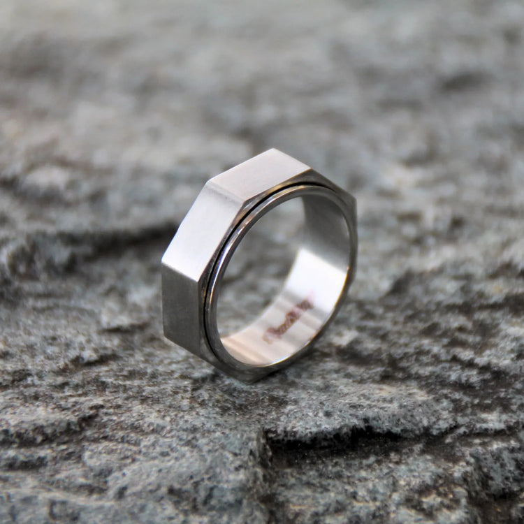 La bague boulon est un bijou unique inspiré de l’univers moto et mécanique. En acier inoxydable, elle est robuste, résistante à l’eau et à la transpiration. Son design ingénieux permet au boulon de tourner, offrant un petit effet anti-stress.